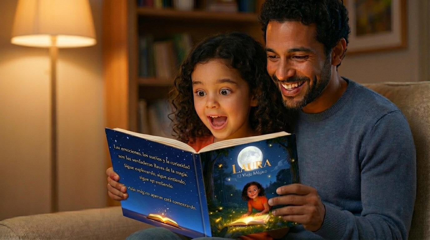 Mira.Crecen con las mejores oportunidades del mundo. Y eso es gracias a ti.Pero seamos sinceros: la mayoría de regalos que reciben son "ruido". Plástico, pantallas y juguetes que duran dos días.Tú buscas algo diferente. Algo con alma."Su Cuento Mágico" no es un libro infantil cualquiera.Es una pieza de colección donde tu pequeño es el protagonista absoluto de una historia de cine.Es la forma más bonita de decirle: "Aquí tienes tus raíces, eres el héroe de tu propia historia".En español. Con calidad premium. Y con una dedicatoria tuya en la primera página para que, pase el tiempo que pase, recuerde quién le regaló esta magia